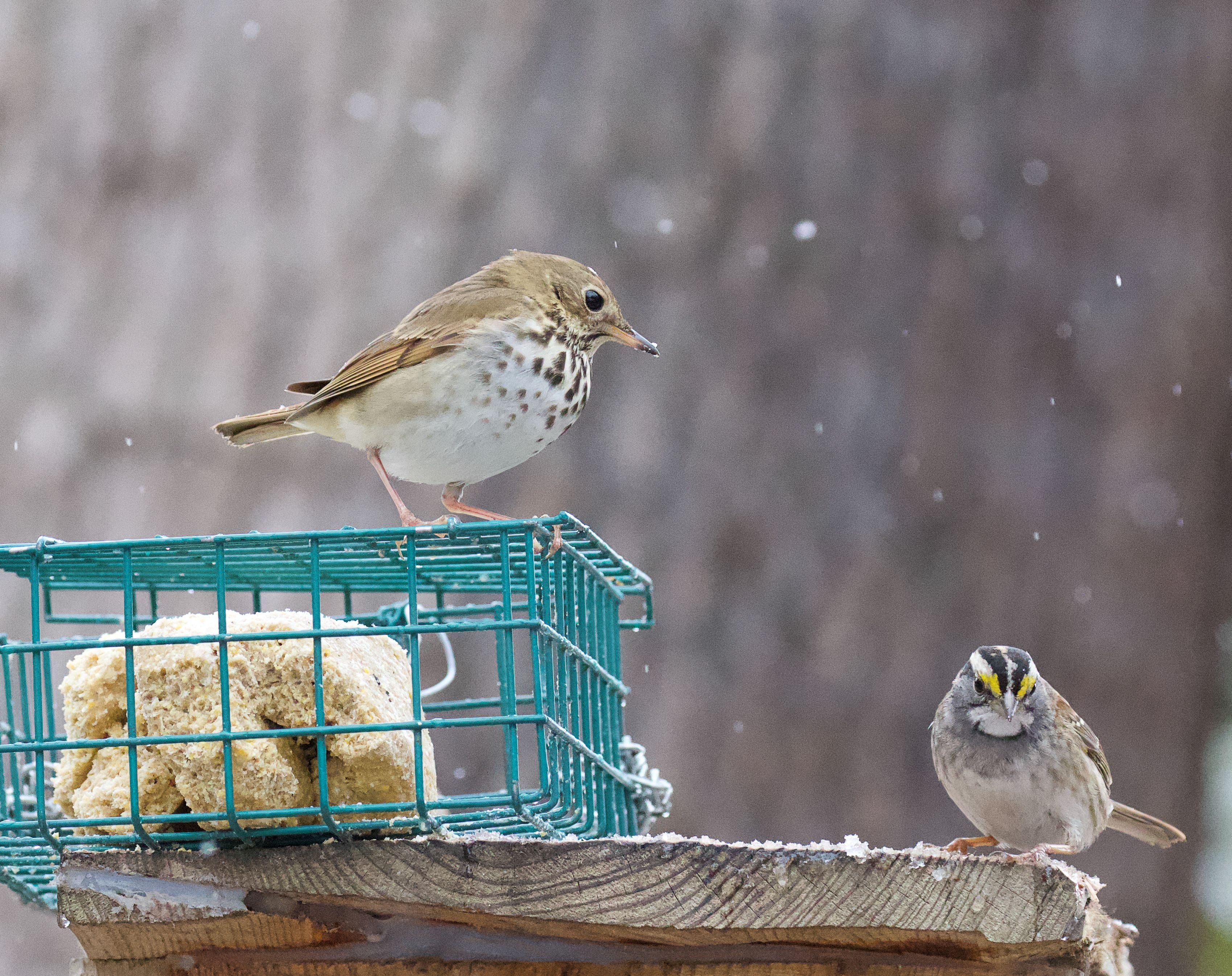 The Winter Bird Survey started during the 2021-2022 winter season. This study supported by Citizen Scientists provides information on which birds are winter residents on the cemetery grounds and which birds may be shortening, or cancelling their fall migration due to the warming climate. Even though the climate is growing hotter, severe cold snaps and wintry weather still occur in southern New England. Suet is a high energy food source that helps birds maintain body temperature and survive during these cold periods. Bird feeders are installed and stocked with suet cakes in close proximity to three ponds on the cemetery grounds. Five-minute point count surveys are conducted near each feeder to document the species that are at or under the feeders eating suet. Species seen or heard nearby are also documented. 22 species have been documented at or under the feeders. 21 more species have been observed nearby.