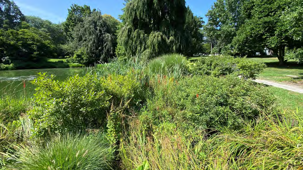 Since Mount Auburn's previous waterbodies assessment in 2017, several changes to our ponds have been observed, including increased erosion, the arrival of invasive plant species such as Reed Canary Grass (Phalaris arundinacea), and the increase in the power of storm events, all of which have negative impacts on the health of these water features. Mount Auburn has expanded its pond maintenance efforts to improve reaction time in addressing invasive plant species arrival and removal before widespread establishment can occur and, additionally, Mount Auburn has implemented out-of-pond efforts to address sheetflow and erosion issues.